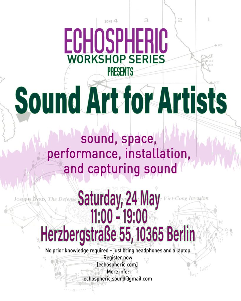 Ein Workshop für bildende Künstler, Tänzer, Architekten, Musiker und alle, die neugierig darauf sind, wie Klang Räume erfüllen und verwandeln kann. Wir bieten eine Einführung in die Klangkunst durch intensives Zuhören, tiefgehende Diskussionen und praktische Experimente.